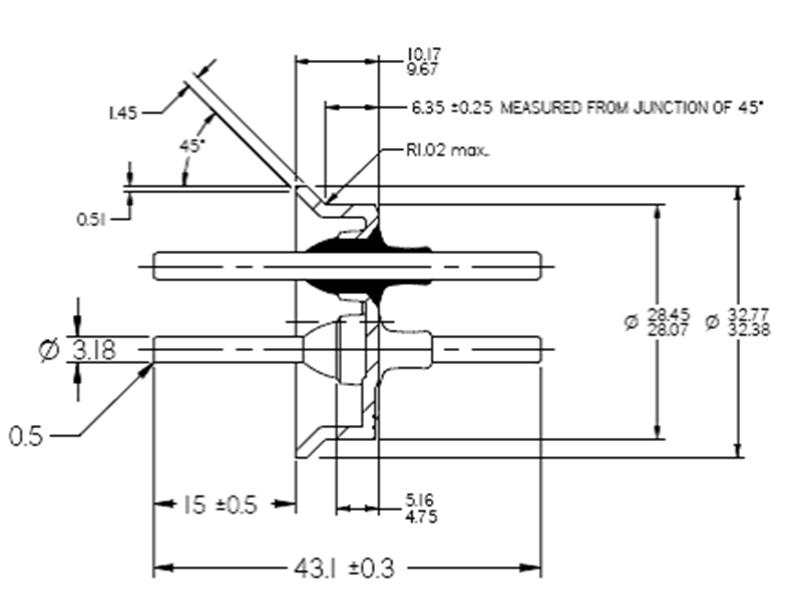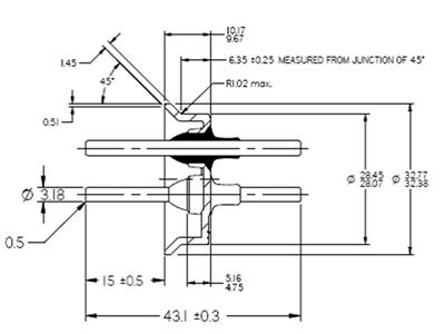 | SC-1-635I | 1.45mm | 15.12mm | Φ3.18mm | 43.1mm | Soldada | Inserción directa | Banda bimetálica | Niquelado no electrolítico | 60A |