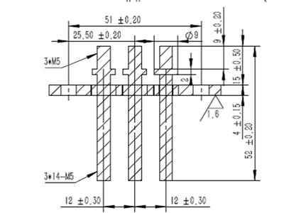 | Modelo | Espesor del cuerpo | Distancia entre los pines | Diámetro externo del pin | Longitud del pin | Distancia entre los orificios | Conexión de la terminal del motor | Conexión de la terminal del controlador | Tratamiento de superficie | Corriente máxima |