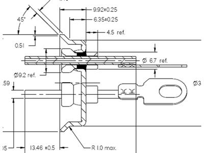 | SC-4-45 | 4.75mm | 14mm | Φ5.0mm | 32.5mm | Anillo de ajuste | Rosca M5 | Rosca M5 | Niquelado no electrolítico | 60A |